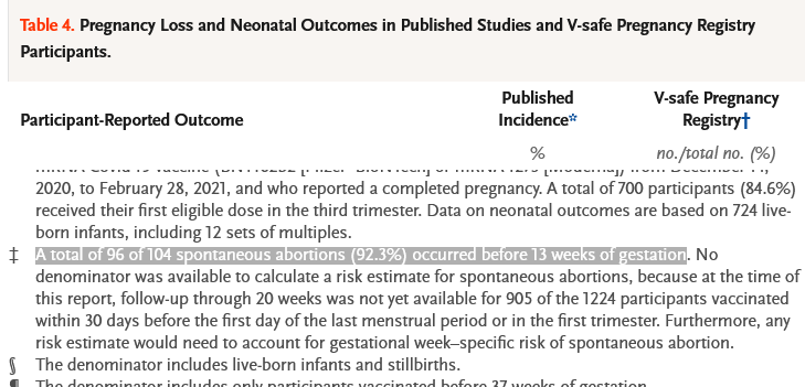 NEJM.org: Table 4. Pregnancy Loss and Neonatal Outcomes in Published Studies and V-safe Pregnancy Registry Participants. April 21, 2021