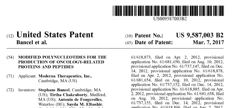 PATENT: MODIFIED POLYNUCLEOTIDES FOR THE PRODUCTION OF ONCOLOGY RELATED PROTEINS AND PEPTIDES 2017